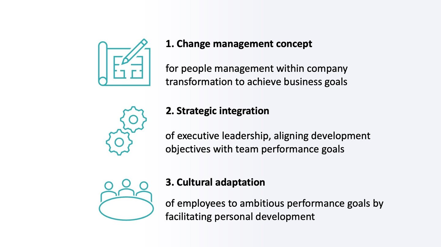 As evolving business processes redefine both, individual (functional) roles, as well as collaborative dynamics, the personal development of employees has become indispensable for facilitating successful change. Therefore, development objectives need to be elicited proactively, to allow executive managers to adjust their leadership strategy accordingly, and, consequently, to enable their teams to reach performance goals.